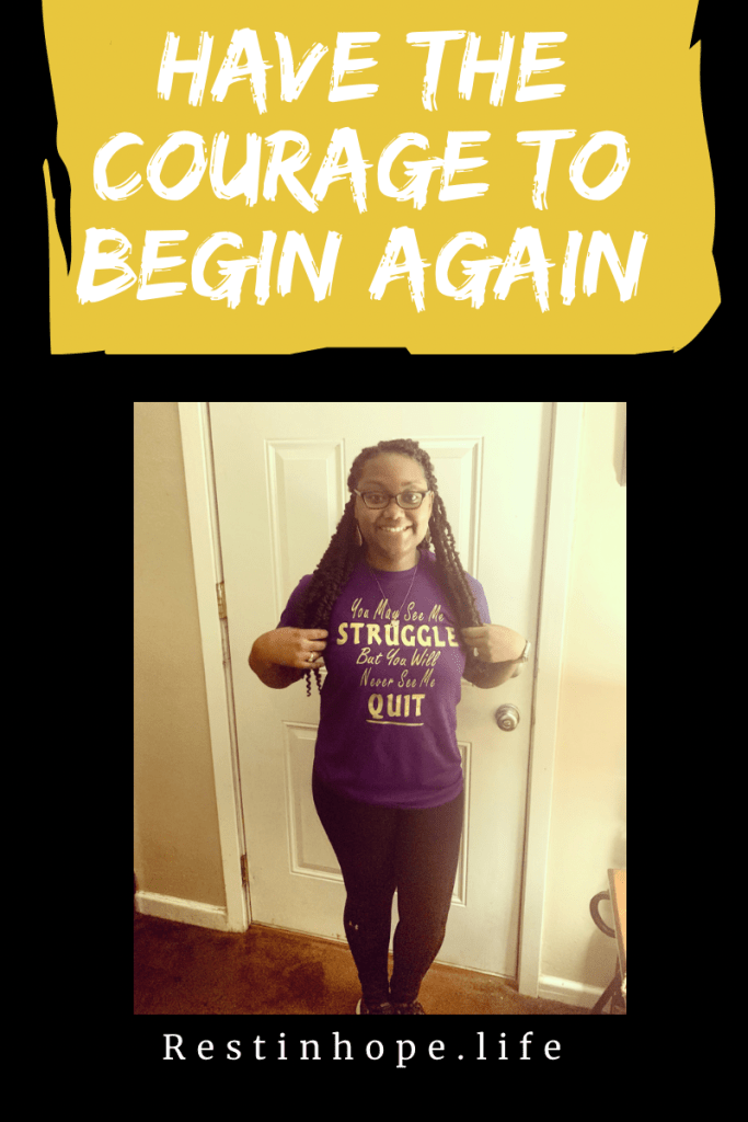 It takes a lot of courage to begin again when you’ve failed at something or life didn’t go the way you expected. But starting over can give you the opportunity to truly build what you really want to see. The great thing about starting over is that you’re starting from a place of experience rather than starting from scratch. Being in that place gives you an advantage because you understand what works and what needs to be adjusted. Don’t be afraid to start again! If you’re not satisfied with your life start where you are, make a plan and fight for your future.